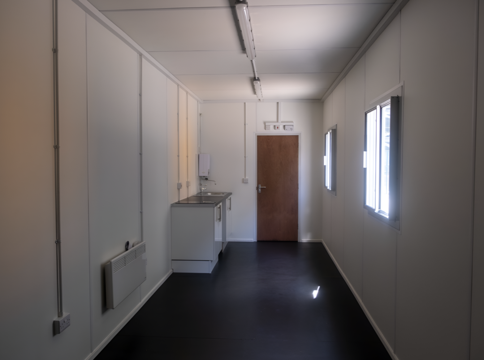 Les murs intérieurs sont isolés et doublés de vinyle 3 mm « Wilkins White » et le sol est recouvert de vinyle antidérapant. Cette conversion comprend également une installation électrique certifiée, équipée d’une entrée monophasée externe 220-240 V et d’un tableau de distribution interne, de quatre lattes de plafond pour l’éclairage, de deux prises commutées et de deux convecteurs muraux.