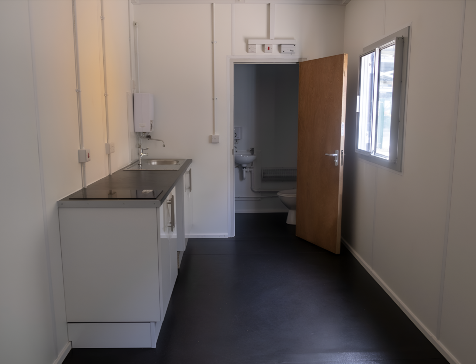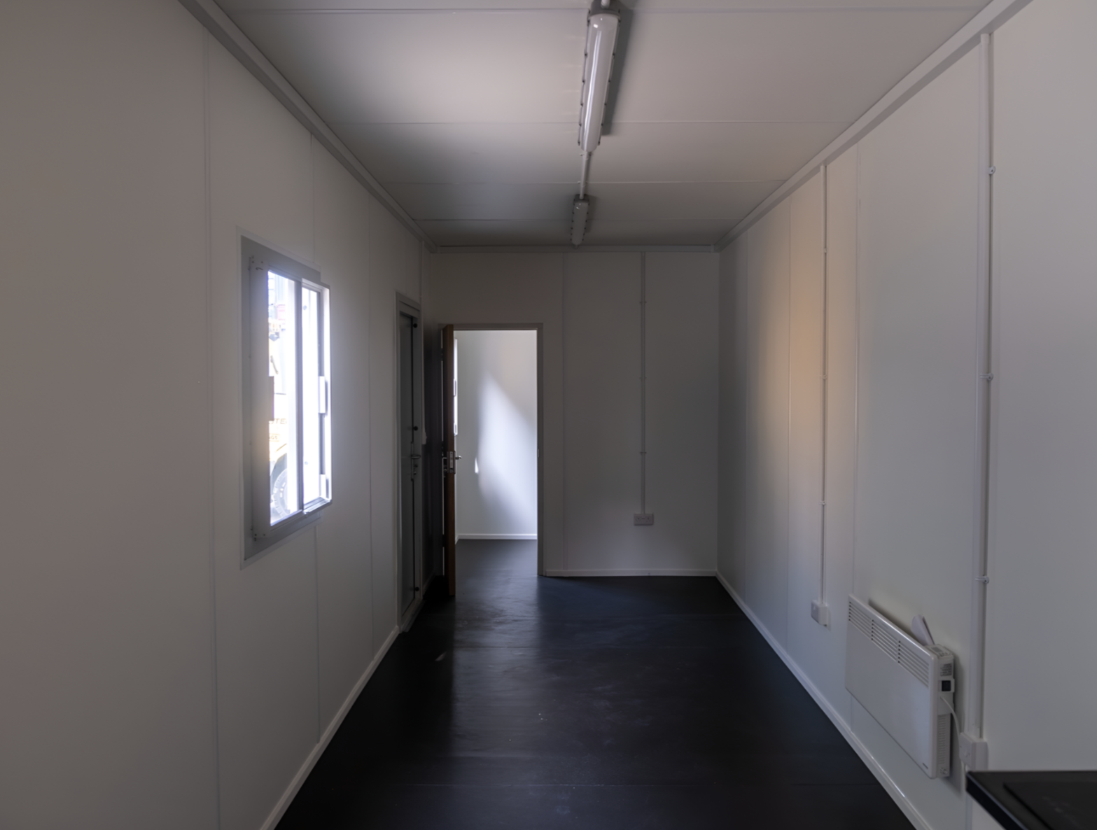 L’unité de bureau de 40 pieds offre un espace intérieur spacieux et flexible pour les entreprises ou les particuliers recherchant des locaux de bureaux supplémentaires. Converti à partir d’un conteneur d’expédition de 40 pieds high cube, un personnel en acier est installé et trois fenêtres à volets anti-vandalisme sont installées à l’extérieur, permettant une ventilation et un éclairage naturels abondants de l’extérieur.