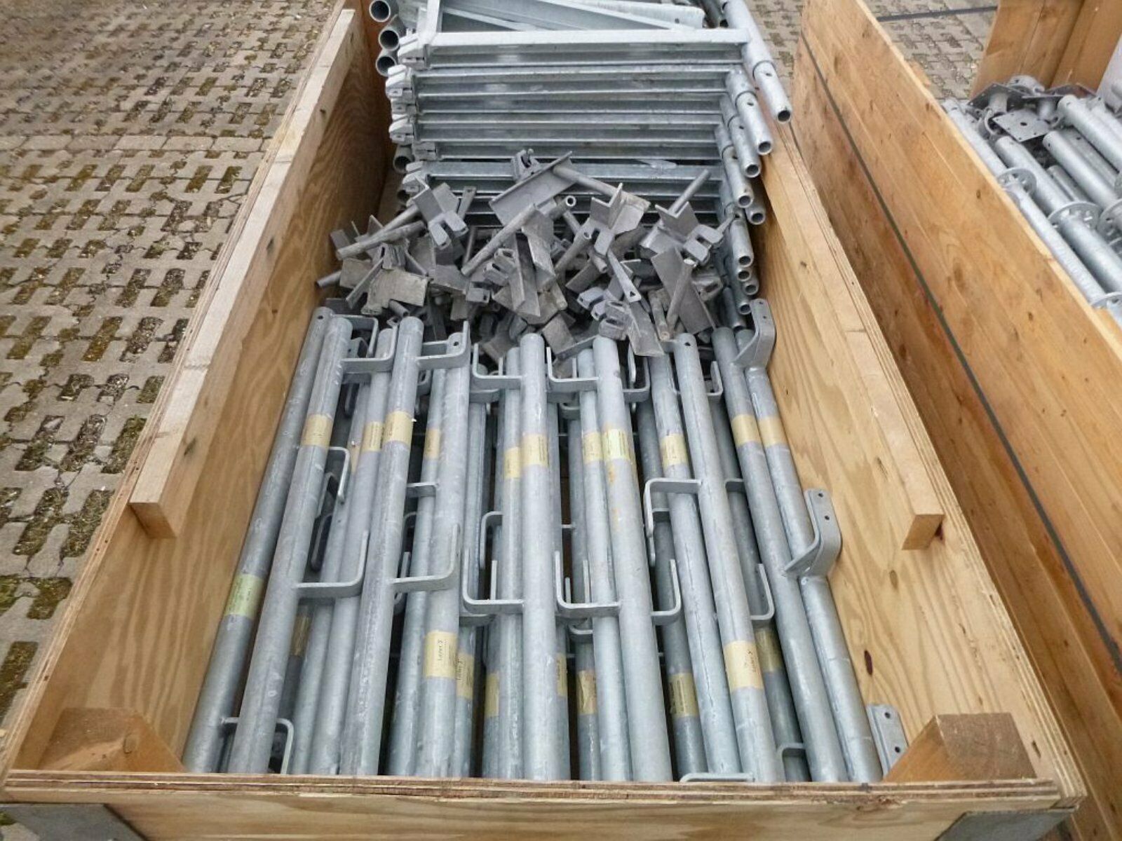 Lot complet de 100M2 Echafaudage Occasion Layher Universel Multidirectionnel vendu à 2460 EUROS TVAC (Livraison incluse/ Emballage Pallette EUROS).